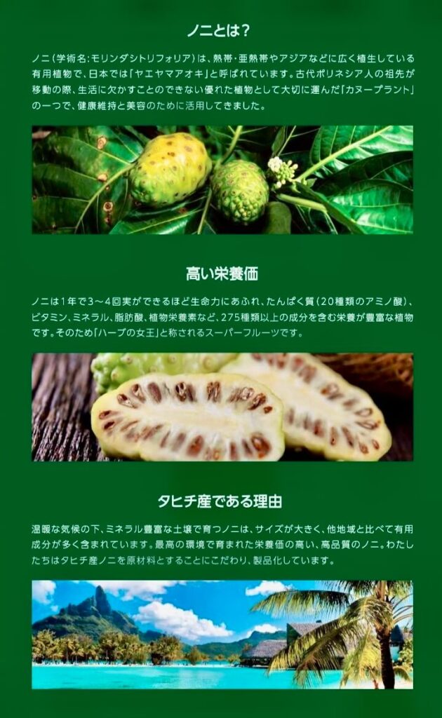 【タヒチアン ノニの素晴らしさ】