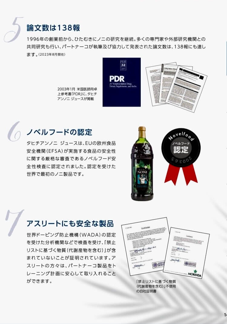 Morinda®(モリンダ®)、TahitianNoni®(タヒチアンノニ™)、TeMana®、HIRO、はパートナーコ・インターナショナルLLCの商標です。© Partner.Co International LLC. Used with permission. All rights reserved.