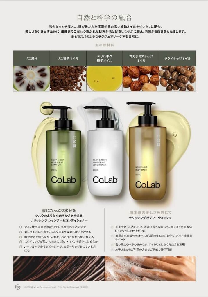 自然の恵みと最先端の科学。この2つの力を掛け合わせ、皆さまに「活力あふれる毎日を送っていただくこと」がパートナーコの役割です。自然の力がもたらすエネルギーと、科学の持つ革新性。両者の奇跡的なコラボレーションから生まれたのが、新しいブランド「Co.Lab」です。「コラボレーション(Collaboration)」と「ラボラトリー(Lab)」の言葉が織りなす世界を体感してください。 そして第一歩として、私たちが自信を持ってお届けするのが、「Co.Lab デイドロップ&ナイトドロップセット」です。